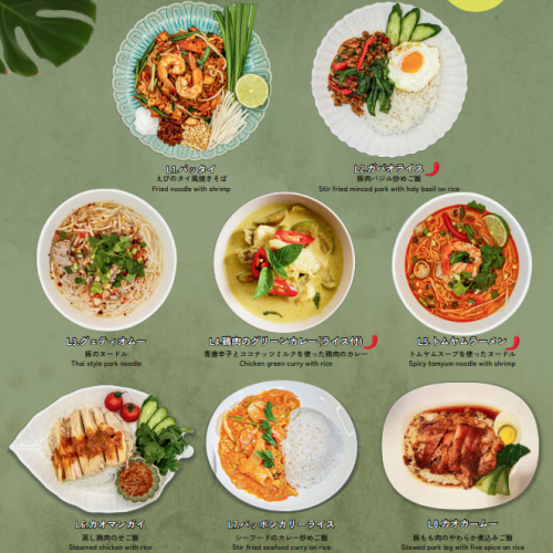 平日の11~16時限定で、ランチをご用意しております。パッタイやグリーンカレーなどの本格タイ料理を、リーズナブルに楽しめるのも魅力です。サラダ・デザート付きで、さらに+200円でトムヤムスープまたはミニガパオライスを追加することも◎