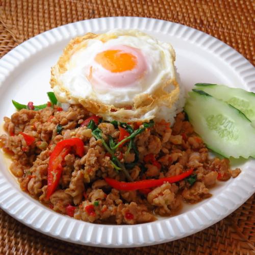 人気No.1メニューは「カオカームー」。柔らかくなるまで煮込み、甘めに味付けをした大きな豚もも肉を、ご飯の上に豪快に載せました。酸っぱくて辛いソースで味変しながら、最後まで美味しくお楽しみいただけます。そのほか、本格的な辛めの味付けのガパオライス、パッタイ、季節のデザートのマンゴーライスもおすすめ♪